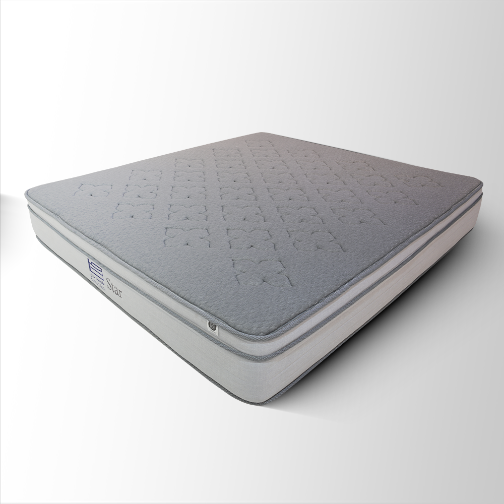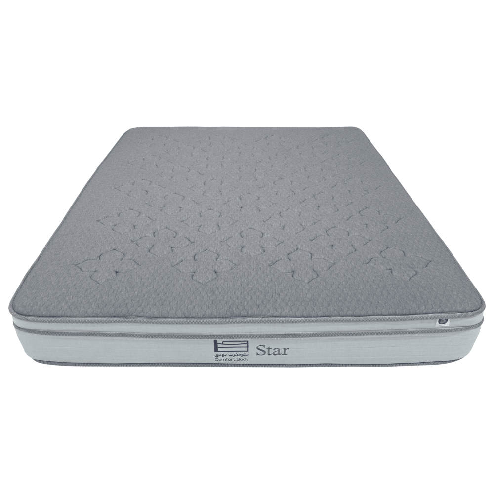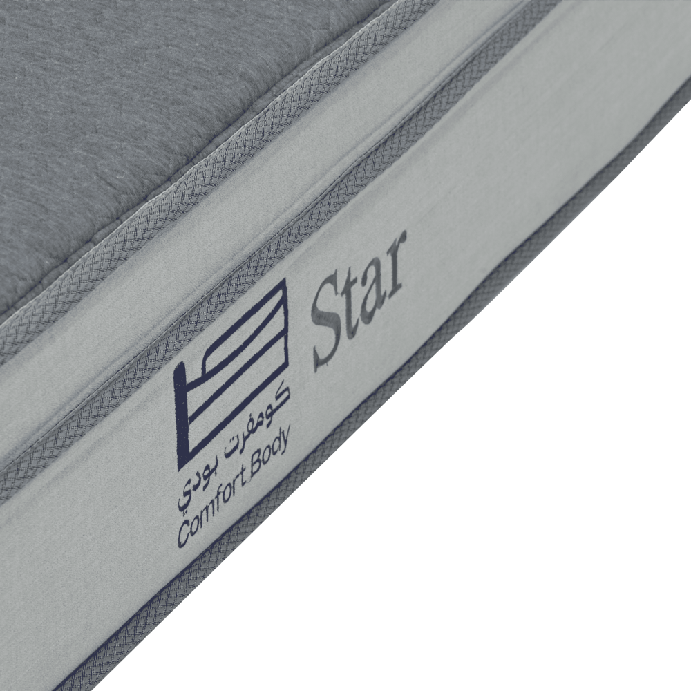 أغتنم نومًا هادئًا وجودة فندقية في بيتك مع مرتبة ستار المصمَّمة بدعم طبي متوازن ونسيج قطن فاخر يضمن تهوية مثالية. تجمع المرتبة بين طبقات مريحة تمنح توزيعًا متساويًا للضغط ولمسة ألوان رمادي وأزرق تضفي فخامة على غرفة النوم.